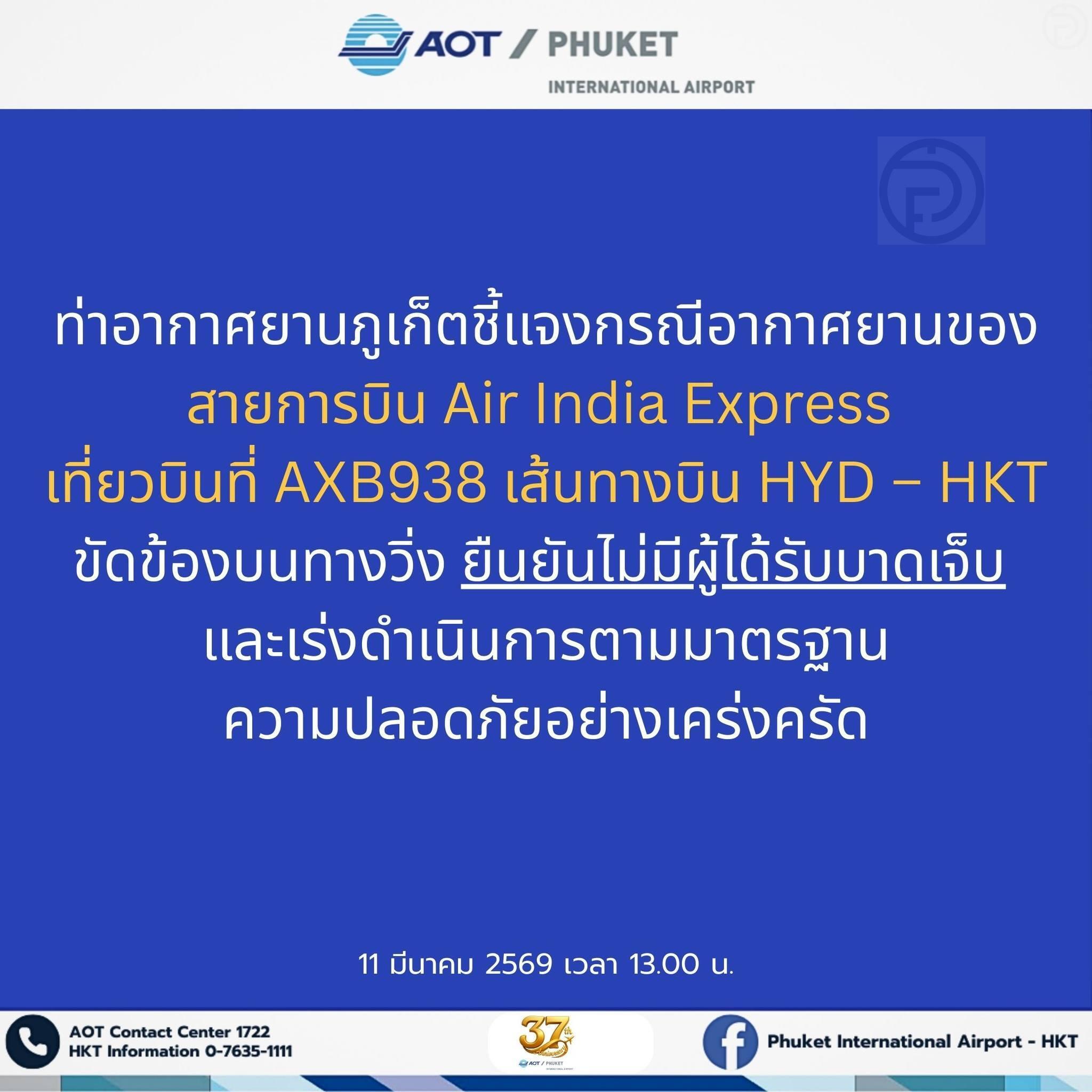 L'aeroporto internazionale di Phuket è ancora impegnato nella risoluzione dell'incidente. Si consiglia ai passeggeri con voli di linea di verificare direttamente con la propria compagnia aerea lo stato aggiornato dei voli prima di recarsi in aeroporto.